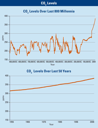 CO2 makes up 70% of total greenhouse gas emissions and thus is the primary contributor to climate change.13 The majority of CO2 comes from the combustion of fossil fuels for electricity generation and transportation. CO2 levels in the atmosphere have spiked to levels significantly higher than any measured over the last 800 millennia. Globally, CO2 levels have risen sharply since the mid-nineteenth century as a consequence of the Industrial Revolution.
