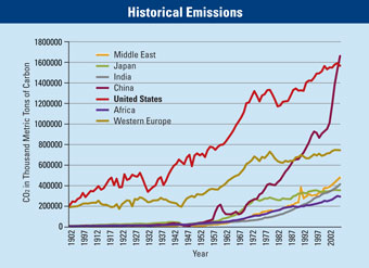 increased emphasis on fuel economy following the 1970s oil shocks was followed by steady renewed growth in the 1990s.15 Western Europe has for the most part stabilized its CO2 emission rate, while China recently overtook the United States.